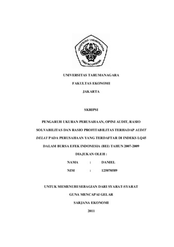 Daniel, Daniel (2011) PENGARUH UKURAN PERUSAHAAN, OPINI AUDIT, RASIO SOLVABILITAS DAN RASIO PROFITABILITAS TERHADAP AUDIT DELAY PADA PERUSAHAAN YANG TERDAFTAR DI INDEKS LQ45 DALAM BURSA EFEK INDONESIA (BEI) TAHUN 2007-2009. Skripsi thesis, UNIVERSITAS TARUMANAGARA.