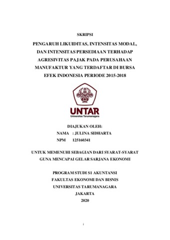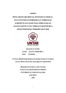 Sidharta, Julina (2020) PENGARUH LIKUIDITAS, INTENSITAS MODAL, DAN INTENSITAS PERSEDIAAN TERHADAP AGRESIVITAS PAJAK PADA PERUSAHAAN MANUFAKTUR YANG TERDAFTAR DI BURSA EFEK INDONESIA PERIODE 2015-2018. Skripsi thesis, UNIVERSITAS TARUMANAGARA.