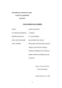 Felianto, Sandy (2013) PENGARUH UKURAN PERUSAHAAN, TINGKAT KECUKUPAN MODAL, TINGKAT EFISIENSI, DAN TINGKAT RISIKO TERHADAP KINERJA BANK SYARIAH. Skripsi thesis, Universitas Tarumanagara.