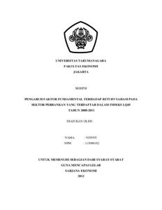 Vonny, Vonny (2013) PENGARUH FAKTOR FUNDAMENTAL TERHADAP RETURN SAHAM PADA SEKTOR PERBANKAN YANG TERDAFTAR DALAM INDEKS LQ45 TAHUN 2008-2011. Skripsi thesis, Universitas Tarumanagara.