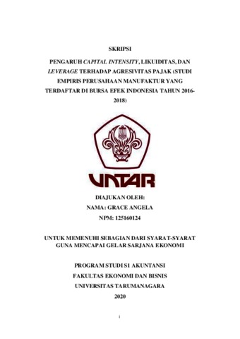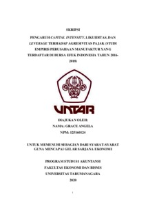 Angela, Grace (2020) PENGARUH CAPITAL INTENSITY, LIKUIDITAS, DAN LEVERAGE TERHADAP AGRESIVITAS PAJAK (STUDI EMPIRIS PERUSAHAAN MANUFAKTUR YANG TERDAFTAR DI BURSA EFEK INDONESIA TAHUN 2016-2018). Skripsi thesis, UNIVERSITAS TARUMANAGARA.