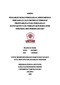 Handry, Handry (2020) PENGARUH UKURAN PERUSAHAAN, PERTUMBUHAN PERUSAHAAN, DAN LIKUIDITAS TERHADAP PROFITABILITAS PADA PERUSAHAAN MANUFAKTUR YANG TERDAFTAR DI BURSA EFEK INDONESIA (BEI) PERIODE 2015-2017. Skripsi thesis, UNIVERSITAS TARUMANAGARA.