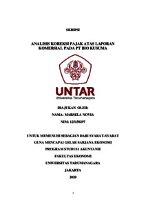 Novia, Marsela (2020) ANALISIS KOREKSI PAJAK ATAS LAPORAN KOMERSIAL PADA PT BIO KUSUMA. Skripsi thesis, UNIVERSITAS TARUMANAGARA.