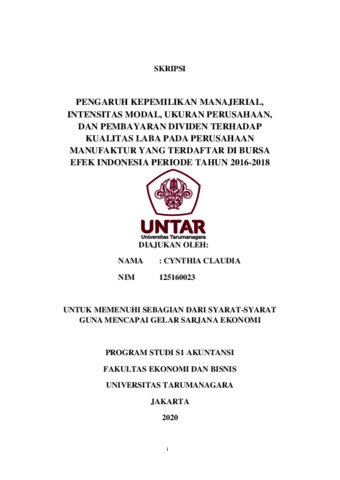 Claudia, Cynthia (2020) PENGARUH KEPEMILIKAN MANAJERIAL, INTENSITAS MODAL, UKURAN PERUSAHAAN, DAN PEMBAYARAN DIVIDEN TERHADAP KUALITAS LABA PADA PERUSAHAAN MANUFAKTUR YANG TERDAFTAR DI BURSA EFEK INDONESIA PERIODE TAHUN 2016-2018. Skripsi thesis, UNIVERSITAS TARUMANAGARA.