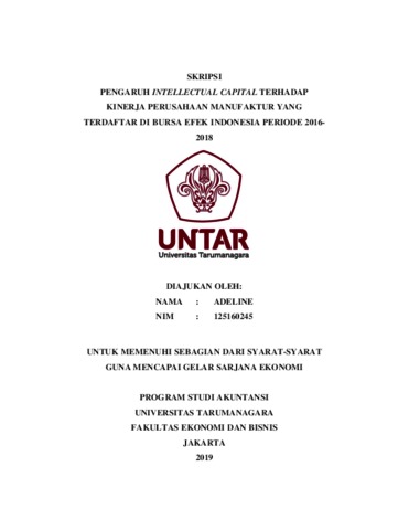 Adeline, Adeline (2020) PENGARUH INTELLECTUAL CAPITAL TERHADAP KINERJA PERUSAHAAN MANUFAKTUR YANG TERDAFTAR DI BURSA EFEK INDONESIA PERIODE 20162018. Skripsi thesis, UNIVERSITAS TARUMANAGARA.