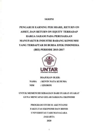 Kusuma, Kevin Nata (2020) Pengaruh Earning Per Share, Return On Asset, Dan Return On Equity Terhadap Harga Saham Pada Perusahaan Manufaktur Industri Barang Konsumsi Yang Terdaftar Di Bursa Efek Indonesia (BEI) Periode 2015-2017. Skripsi thesis, UNIVERSITAS TARUMANAGARA.