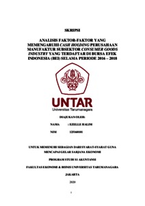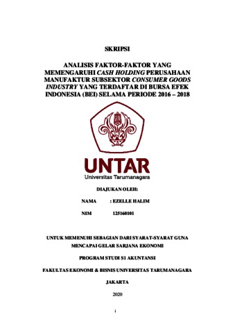 Halim, Ezelle (2020) ANALISIS FAKTOR-FAKTOR YANG MEMENGARUHI CASH HOLDING PERUSAHAAN MANUFAKTUR SUBSEKTOR CONSUMER GOODS INDUSTRY YANG TERDAFTAR DI BURSA EFEK INDONESIA (BEI) SELAMA PERIODE 2016 – 2018. Skripsi thesis, UNIVERSITAS TARUMANAGARA.