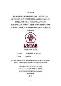 Aurelian, Marchel (2020) PENGARUH PROFITABILITAS, LIKUIDITAS, LEVERAGE, DAN PERTUMBUHAN PERUSAHAAN TERHADAP NILAI PERUSAHAAN PADA PERUSAHAAN MANUFAKTUR YANG TERDAFTAR DI BURSA EFEK INDONESIA (BEI) PADA PERIODE 2016-2018. Skripsi thesis, UNIVERSITAS TARUMANAGARA.