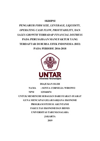 Wibowo, Sonya Cornelia (2020) PENGARUH FIRM SIZE, LEVERAGE, LIQUIDITY, OPERATING CASH FLOW, PROFITABILITY, DAN SALES GROWTH TERHADAP FINANCIAL DISTRESS PADA PERUSAHAAN MANUFAKTUR YANG TERDAFTAR DI BURSA EFEK INDONESIA (BEI) PADA PERIODE 2016-2018. Skripsi thesis, UNIVERSITAS TARUMANAGARA.