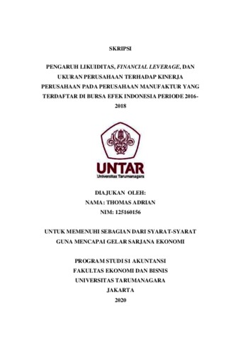 Kata Kunci: likuiditas, financial leverage, ukuran perusahaan, kinerja perusahaan.