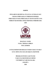 Adrian, Thomas (2020) PENGARUH LIKUIDITAS, FINANCIAL LEVERAGE, DAN UKURAN PERUSAHAAN TERHADAP KINERJA PERUSAHAAN PADA PERUSAHAAN MANUFAKTUR YANG TERDAFTAR DI BURSA EFEK INDONESIA PERIODE 2016- 2018. Skripsi thesis, UNIVERSITAS TARUMANAGARA.