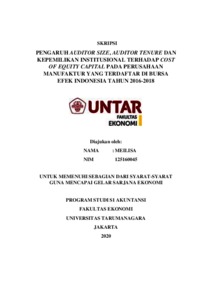 Meilisa, Meilisa (2020) PENGARUH AUDITOR SIZE, AUDITOR TENURE DAN KEPEMILIKAN INSTITUSIONAL TERHADAP COST OF EQUITY CAPITAL PADA PERUSAHAAN MANUFAKTUR YANG TERDAFTAR DI BURSA EFEK INDONESIA TAHUN 2016-2018. Skripsi thesis, UNIVERSITAS TARUMANAGARA.