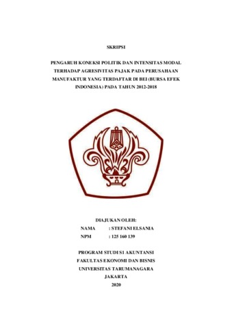 Tujuan penelitian ini adalah untuk memperoleh bukti empiris mengenaii pengaruh koneksi politik dan intensitas modal terhadap agresivitas pajak pada perusahaan manufaktur yang terdaftar di bei pada tahun 2012-2018. Penelitian ini menggunakan sampel perusahaan manufaktur berdasarkan metode purposive sampling. Data yang digunakan adalah data sekunder berupa laporan keuangan. Metode statistik yang digunakan untuk menguji hipotesis adalah metode analisis regresi berganda. Hasil penelitian menunjukkan bahwa koneksi politik dan intensitas modal memiliki pengaruh positif terhadap agresivitas pajak. Penelitian selanjutnya diharapkan memperpanjang metode penelitian, menambah variabel independen, serta menggunakan proksi variabel selain yang digunakan dalam penelitian ini.