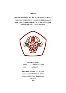 ELSANIA, STEFANI (2020) PENGARUH KONEKSI POLITIK DAN INTENSITAS MODAL TERHADAP AGRESIVITAS PAJAK PADA PERUSAHAAN MANUFAKTUR YANG TERDAFTAR DI BEI (BURSA EFEK INDONESIA) PADA TAHUN 2012-2018. Skripsi thesis, Universitas Tarumanagara.