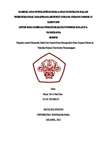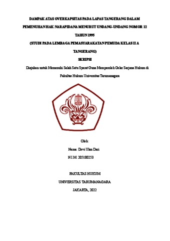 Dari, Devi Ulan (2022) Dampak Atas Overkapasitas pada Lapas Tangerang dalam Pemenuhan Hak Narapidana Menurut Undang-Undang Nomor 12 Tahun 1995 (Studi Pada Lembaga Pemasyarakatan Pemuda Kelas II A Tangerang). Skripsi thesis, Universitas Tarumanagara.