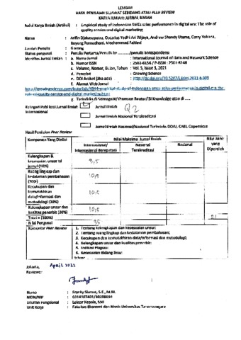 Arifin Djakasaputra, review (2021) Review Empirical study of indonesian SMEs sales performance in digital era : The role of quality service and digital marketing. Empirical study of indonesian SMEs sales performance in digital era : The role of quality service and digital marketing, 5 (3). ISSN 2561-8156 / 2561-8148