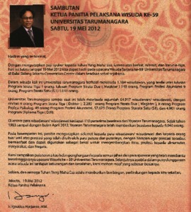 UNTAR, WISUDA (2011) sambutan wisuda untar ke 59. BUKU WISUDA KE 59.