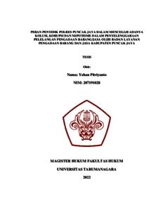 Pitriyanto, Yohan (2022) Peran Penyidik Polres Puncak Jaya dalam mencegah adanya Kolusi, Korupsi dan Nepotisme dalam Penyelenggaraan Pelelangan Pengadaan Barang/Jasa oleh Badan Layanan Pengadaan Barang/Jasa Kabupaten Puncak Jaya. Masters thesis, Universitas Tarumanagara.