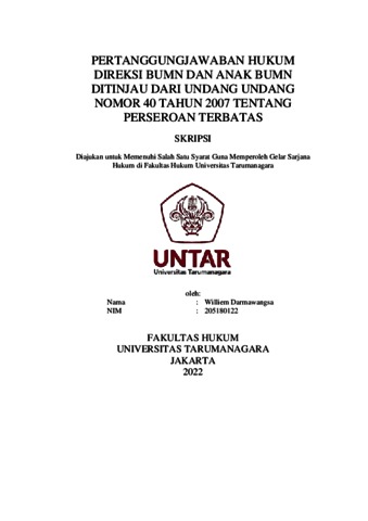 Darmawangsa, Williem (2022) Pertanggungjawaban Hukum Direksi Bumn Dan Anak Bumn Ditinjau Dari Undang Undang Nomor 40 Tahun 2007 Tentang Perseroan Terbatas. Skripsi thesis, Universitas Tarumanagara.