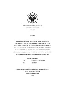 Lysander, Ignatius (2017) ANALISIS PENGARUH MEKANISME GOOD CORPORATE GOVERNANCE, UKURAN PERUSAHAAN, PROFITABILITAS, FINANCIAL LEVERAGE, DAN PERTUMBUHAN PENDAPATAN DALAM MENYIKAPI KECENDERUNGAN PRAKTIK EARNINGS MANAGEMENT PADA PERUSAHAAN DI SEKTOR INDUSTRI PERDAGANGAN, JASA, DAN INVESTASI YANG TER-LISTING DI BURSA EFEK INDONESIA PADA PERIODE 2013 S.D. 2015. Skripsi thesis, UNIVERSITAS TARUMANAGARA.