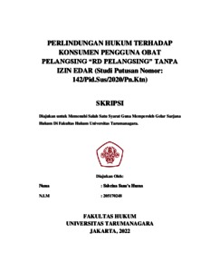 Husna, Sabrina Sana'a (2022) Perlindungan Hukum Terhadap Konsumen Pengguna Obat Pelangsing “RD Pelangsing” Tanpa Izin Edar (Studi Putusan Nomor: 142/Pid.Sus/2020/Pn.Ktn). Skripsi thesis, Universitas Tarumanagara.