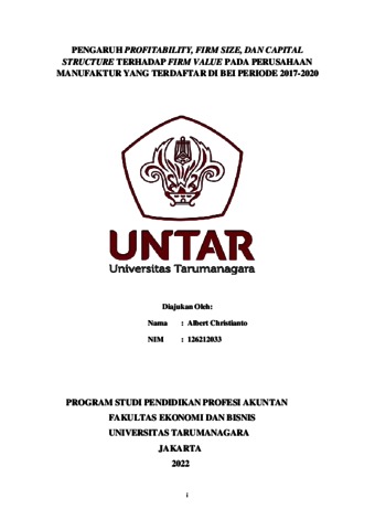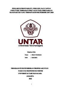 Christianto, Albert (2021) PENGARUH CAPITAL STRUCTURE, PROFITABILITY FIRM SIZE, GROWTH, DAN LIQUIDITY TERHADAP NILAI PERUSAHAAN MANUFAKTUR YANG TERDAFTAR DI BURSA EFEK INDONESIA PERIODE 2017- 2019. Diploma thesis, Universitas Tarumanagara.