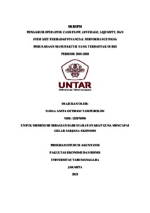 TAMPUBOLON, ANITA OCTRANI (2021) PENGARUH OPERATING CASH FLOW, LEVERAGE, LIQUIDITY, DAN FIRM SIZE TERHADAP FINANCIAL PERFORMANCE PADA PERUSAHAAN MANUFAKTUR YANG TERDAFTAR DI BEI PERIODE 2018-2020. Skripsi thesis, Universitas Tarumanagara.