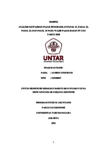 STEFHANY, AUDREY (2021) ANALISIS KEWAJIBAN PAJAK PENGHASILAN PASAL 21, PASAL 22, PASAL 23, DAN PASAL 25 PADA WAJIB PAJAK BADAN PT XYZ TAHUN 2020. Skripsi thesis, Universitas Tarumanagara.