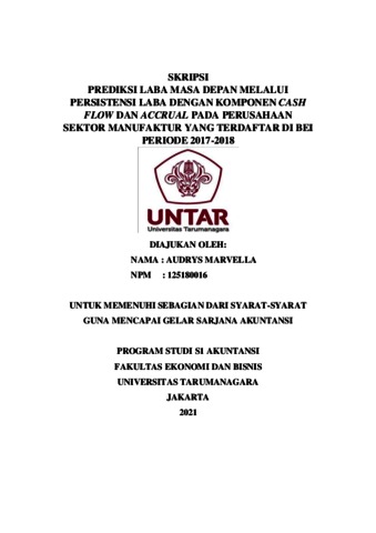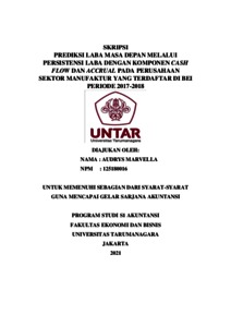 MARVELLA, AUDRYS (2021) PREDIKSI LABA MASA DEPAN MELALUI PERSISTENSI LABA DENGAN KOMPONEN CASH FLOW DAN ACCRUAL PADA PERUSAHAAN SEKTOR MANUFAKTUR YANG TERDAFTAR DI BEI PERIODE 2017-2018. Skripsi thesis, Universitas Tarumanagara.