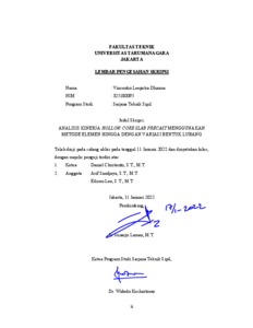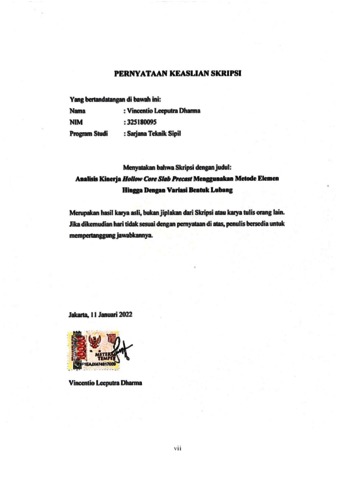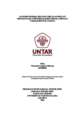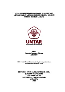 Dharma, Vincentio Leeputra (2022) Analisis kinerja hollow core slab precast menggunakan metode elemen hingga dengan variasi bentuk lubang. Skripsi thesis, Universitas Tarumanagara.