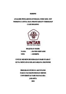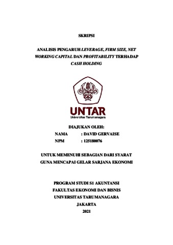GERVAISE, DAVID (2021) ANALISIS PENGARUH LEVERAGE, FIRM SIZE, NET WORKING CAPITAL DAN PROFITABILITY TERHADAP CASH HOLDING. Skripsi thesis, Universitas Tarumanagara.