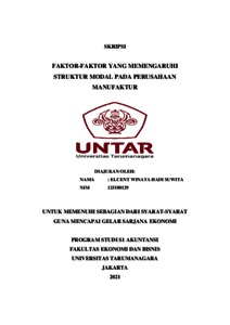 SUWITA, ELCENT WINATA HADI (2021) FAKTOR-FAKTOR YANG MEMENGARUHI STRUKTUR MODAL PADA PERUSAHAAN MANUFAKTUR. Skripsi thesis, Universitas Tarumanagara.