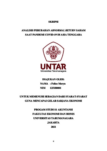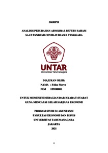 Meryn, Felice (2021) ANALISIS PERUBAHAN ABNORMAL RETURN SAHAM SAAT PANDEMI COVID-19 DI ASIA TENGGARA. Skripsi thesis, Universitas Tarumanagara.