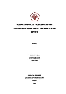 Elizabeth, Maria (2022) HUBUNGAN REGULASI EMOSI DENGAN STRES AKADEMIK PADA SISWA SMA SELAMA MASA PANDEMI COVID-19. Skripsi thesis, Universitas Tarumanagara.
