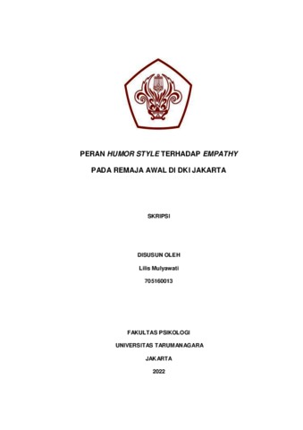 Mulyawati, Lilis (2022) Peran Humor Style Terhadap Empathy Pada Remaja Awal di DKI Jakarta. Skripsi thesis, Universitas Tarumanagara.
