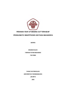 Muhamad, Farhan Fathin (2022) PERANAN FEAR OF MISSING OUT TERHADAP PROBLEMATIC SMARTPHONE USE PADA MAHASISWA. Skripsi thesis, Universitas Tarumanagara.