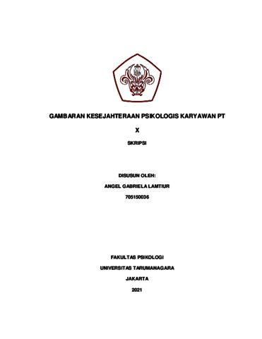 Gabriela, Angel (2022) Gambaran Kesejahteraan Psikologis Karyawan PT.X. Skripsi thesis, Universitas Tarumanagara.