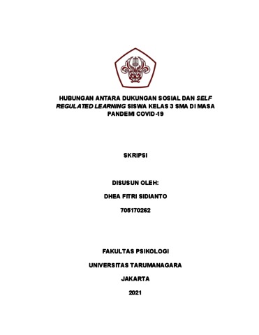 Sidianto, Dhea Fitri (2022) Hubungan Antara Dukungan Sosial dan Self Regulated Learning Siswa Kelas 3 SMA di Masa Pandemi COVID-19. Skripsi thesis, Universitas Tarumanagara.