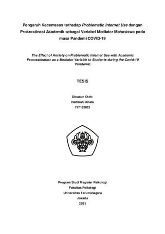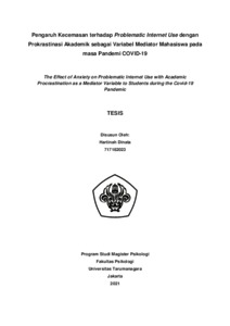 Dinata, Hartinah (2022) Pengaruh Kecemasan terhadap Problematic Internet Use dengan Prokrastinasi Akademik Sebagai Variabel Mediator Mahasiswa pada masa Pandemi Covid-19. Masters thesis, Universitas Tarumanagara.