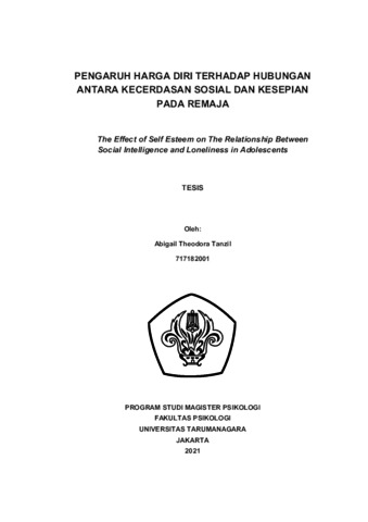 Tanzil, Abigail Theodora (2022) Pengaruh Harga Diri terhadap Hubungan antara Kecerdasan Sosial dan Kesepian pada Remaja. Masters thesis, Universitas Tarumanagara.