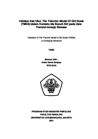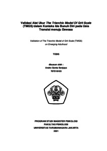 Senjaya, Andre Genta (2022) Validasi Alat Ukur The Triarchic Model Of Grit Scale (TMGS) dalam Konteks Ide Bunuh Diri pada Usia Transisi menuju Dewasa. Masters thesis, Universitas Tarumanagara.