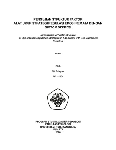 Bahiyah,, Siti (2022) PENGUJIAN STRUKTUR FAKTOR ALAT UKUR STRATEGI REGULASI EMOSI REMAJA DENGAN SIMTOM DEPRESI. Masters thesis, Universitas Tarumanagara.