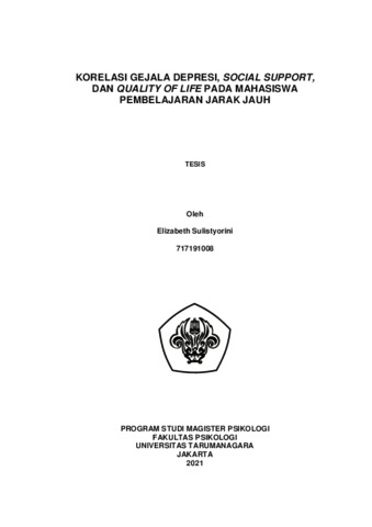 Sulistyorini, Elizabeth (2022) Korelasi Gejala Depresi, Social Support, dan Quality of Life pada Mahasiswa Pembelajaran Jarak Jauh. Masters thesis, Universitas Tarumanagara.