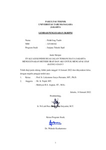Taubi, Falah Isag (2022) Evaluasi kondisi ruas jalan Tomang Raya Jakarta menggunakan metode irap dan metode akj untuk mencapai star rating 4 dan 5. Skripsi thesis, Universitas Tarumanagara.