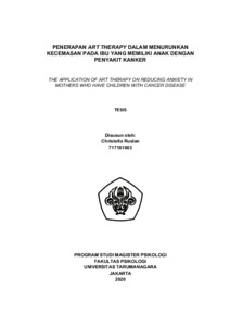 Ruslan, Christella (2022) PENERAPAN ART THERAPY DALAM MENURUNKAN KECEMASAN PADA IBU YANG MEMILIKI ANAK DENGAN PENYAKIT KANKER. Masters thesis, Universitas Tarumanagara.