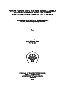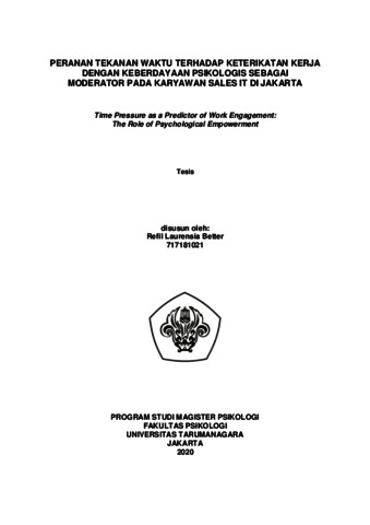 Better, Refil Laurensia (2022) Peranan Time Pressure terhadap Work Engagement dengan Psychological Empowerment sebagai Moderator pada Sales IT di Jakarta. Masters thesis, Universitas Tarumanagara.