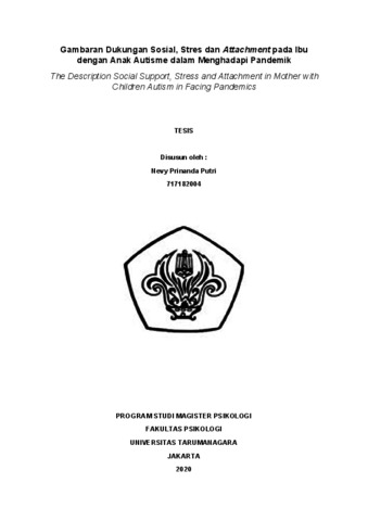 Putri, Nevy Prinanda (2022) GAMBARAN DUKUNGAN SOSIAL, STRES DAN ATTACHMENT PADA IBU DENGAN ANAK AUTISME DALAM MENGHADAPI PANDEMIK. Masters thesis, Universitas Tarumanagara.