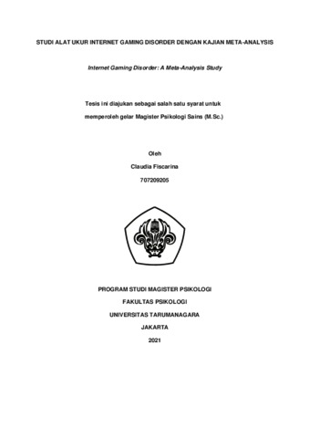 Fiscarina, Claudia (2022) STUDI ALAT UKUR INTERNET GAMING DISORDER DENGAN KAJIAN META-ANALYSIS. Masters thesis, Universitas Tarumanagara.