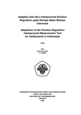 Penelitian ini bertujuan untuk mengetahui apakah hasil adaptasi Interpersonal Emotion Regulation Questionnaire ke dalam Bahasa Indonesia memiliki struktur yang sama dengan alat ukur Interpersonal Emotion Regulation Questionnaire dari Hofmann, Carpenter dan Curtis. Partisipan penelitian ini adalah 202 partisipan dengan karakteristik berusia 12-21 tahun. Hasil analisis data menunjukkan bahwa Interpersonal Emotion Regulation Questionnaire yang sudah diterjemahkan kedalam bahasa Indonesia memiliki nilai daya beda butir, dan nilai Content Validity Index (CVI) yang baik. Pengujian validitas kriteria, mendapatkan hasil bahwa ERQ dengan IERQ memiliki hubungan. Dimensi Cognitive Reappraisal memiliki hubungan dengan semua dimensi IERQ. Sedangkan dimensi Expression Suppression hanya memiliki hubungan dengan dimensi enhancing positive affect dan soothing. Pengujian validitas kriteria antara kecemasan dengan Interpersonal Emotion Regulation Questionnaire mendapatkan hasil bahwa kecemasan dengan Interpersonal Emotion Regulation Questionnaire memiliki hubungan. Sedangkan ditinjau dari dimensi Interpersonal Emotion Regulation Questionnaire menunjukkan bahwa hanya dimensi social modeling dan perspective taking yang memiliki hubungan dengan kecemasan. Pengujian validitas struktur pada alat ukur Interpersonal Emotion Regulation Questionnaire yang sudah diadaptasi kedalam bahasa Indonesia menunjukkan terdapat hubungan positif dan signifikan struktur tes Interpersonal Emotion Regulation baik.