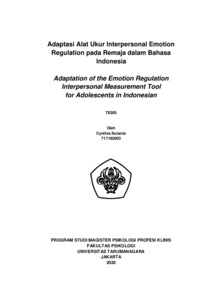 Sutanto, Cynthia (2022) Adaptasi Alat Ukur Interpersonal Emotion Regulation pada Remaja dalam Bahasa Indonesia. Masters thesis, Universitas Tarumanagara.